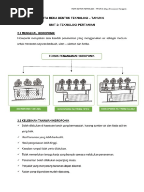 Teknologi Pertanian Hidroponik Tahun 6 Worksheet
